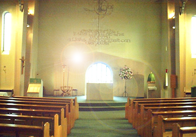 The Coxlodge premises comprised a four-classroom school serving 5 to 15 year olds. A folding screen separated off the altar and sacristy and parishioners sat at school desks or on low wooden benches.