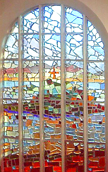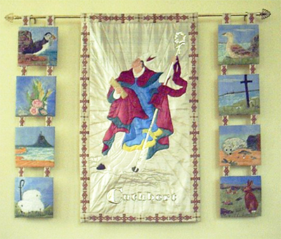 In recent years the church at Kenton has been re-ordered, in effect turning the inside of the building around and providing a new Narthex and Parish Room. In 1995 a stained-glass window, designed and executed by Ralph Patterson, was provided in the sanctuary, depicting a view of St Cuthbert’s Island and the mainland from Holy Island, which St Cuthbert loved so much. A decorative banner was also designed and produced by a group of parishioners, showing our patron saint and various elements of his life. We feel sure that St Cuthbert and Fr Crawford would have approved.